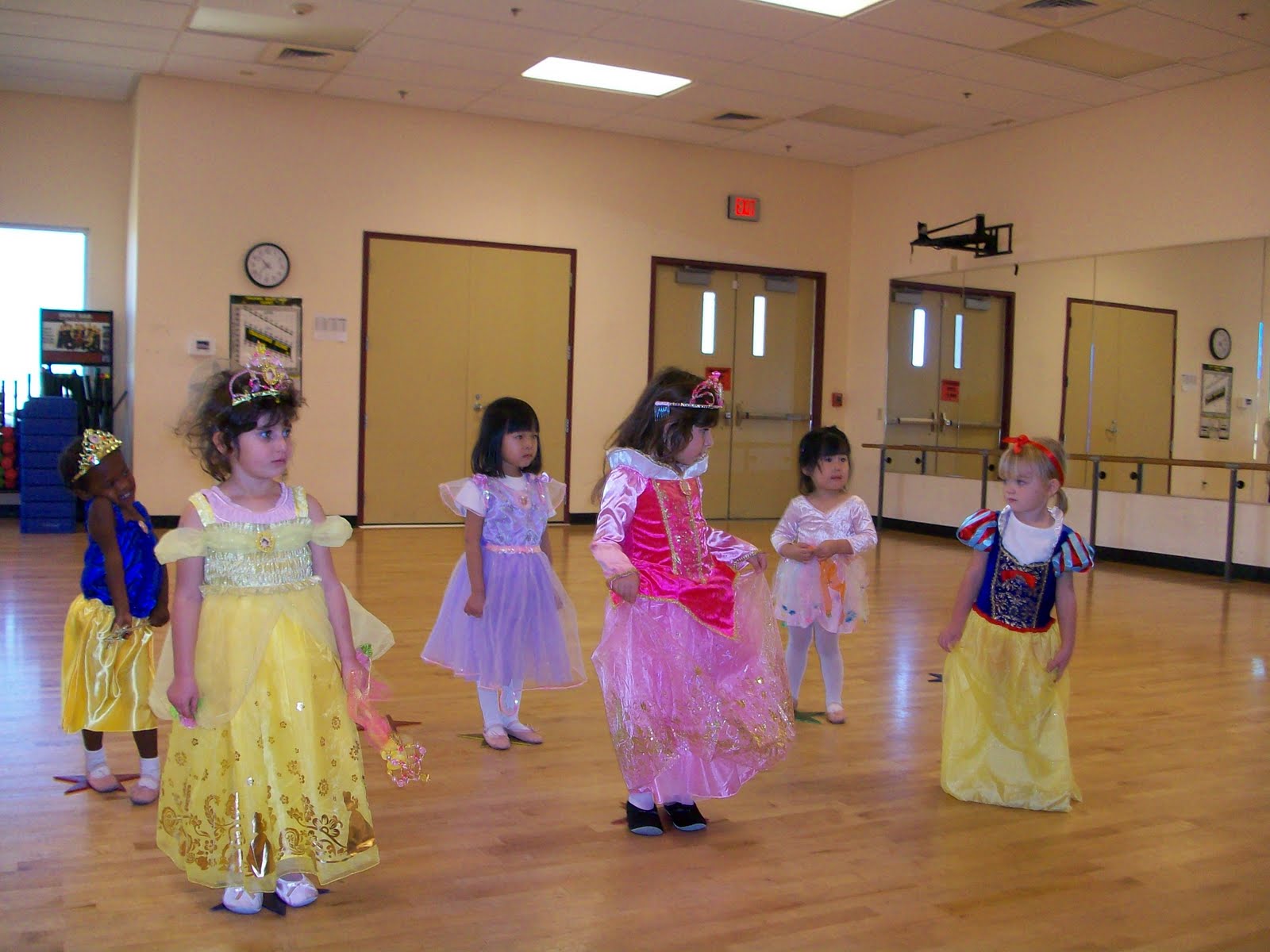 For dance class before Halloween the kids were asked to wear their costumes. We decided that Elliot's chicken costume would be too warm to dance in so she got to wear one of her princess dresses. She chose Snow White...it is her favorite right now since Grandma just bought her the DVD. All of the girls had on princess dresses (shocker!) and their teacher was a pirate.